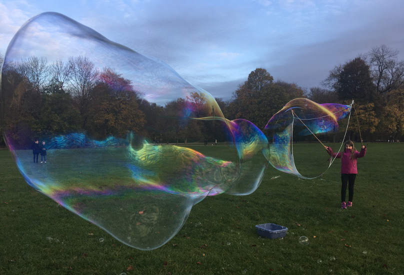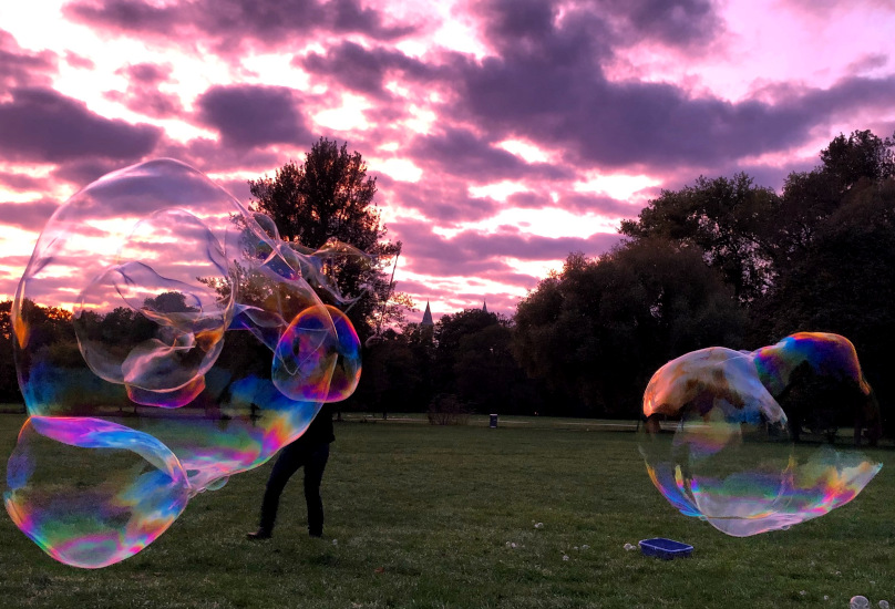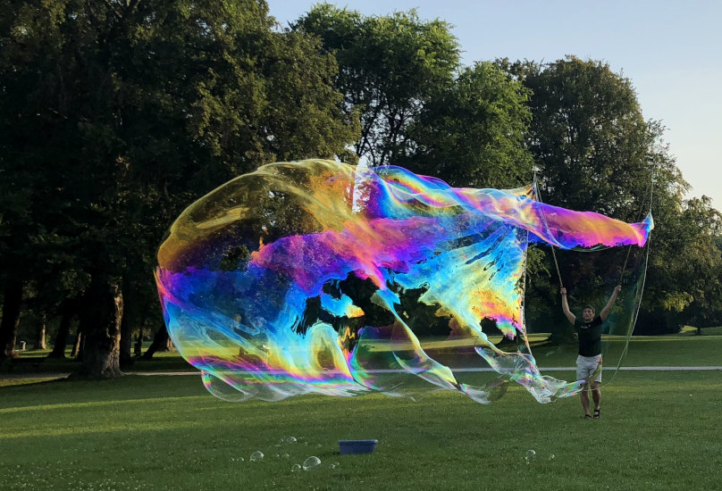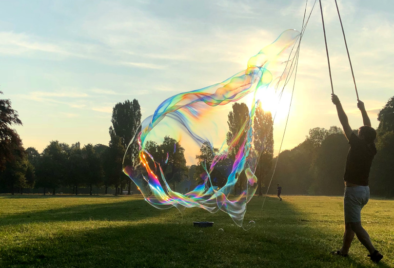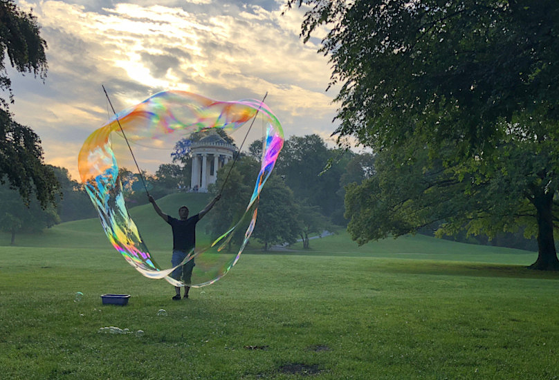 Entspannen Sie beim Betrachten von schönen Seifenblasen. Wir haben einige faszinierende Formen und Farben in der Galerie zusammengestellt. Es sind auch einige Riesenseifenblasen dabei. Die Seifenblasenbilder im Großformat können Sie durch einen Klick auf das jeweilige Bild betrachten.